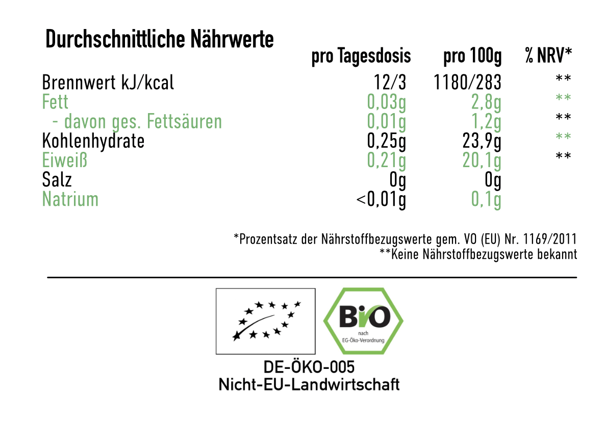 Zutaten: 100 g Löwenmähnenpulver aus kontrolliert biologischem Anbau.
